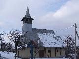 | Detalii: | Biserica de lemn Sfântul Nicolae, monument de arhitectură, se află în partea de nord a așezării. Biserica este clădită din bârne de brad, pe o temelie de piatră, Edificiul a fost înălțat spre mijlocul secolului al XVIII-lea. Planimetria este cea comună zonei: absida altarului pentagonală decroșată, naos și pronaos rectangular, turnul ridicat peste pronaos. Intrarea se face pe latura sudică în naos. Pronaosul este tăvănit, iar naosul și parțial absida altarului sunt acoperite cu câte o boltă semicilindrică din scândură. Cafasul a fost adăugat în 1871. Edificiul a suferit o serie de transformări exterioare, cum ar fi închiderea galeriei turnului, înlocuirea învelitorii cu tablă, tencuiala exterioară. În absidă se păstrează fragmentar pictura murală datată pe boltă cu cifre arabe în 1765, realizată de un artist talentat, având un desen sigur și viguros. Pictura tâmplei aparține unui alt pictor din a doua jumătate a veacului al XVIII-lea, care mai păstrează în stilul său unele elemente de tradiție brâncovenească[2]. Naosul conservă o parte din pictura murală, în special pe bolta cilindrică. Mai multe icoane pictate pe sticlă provin din centrul de pictură de la Nicula. | |||||||